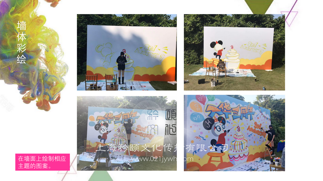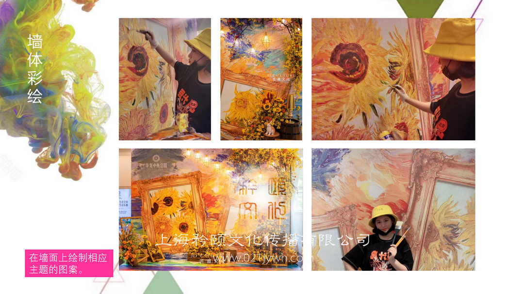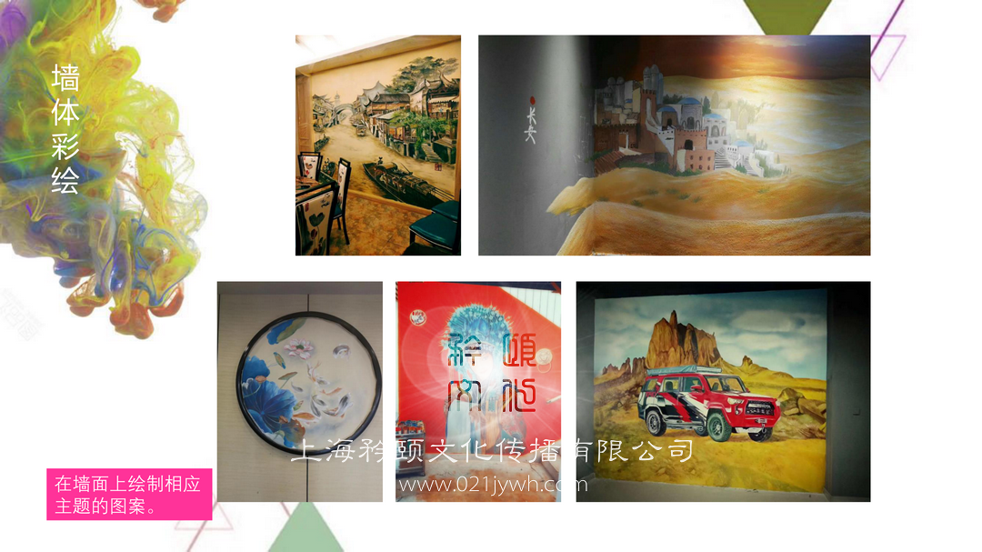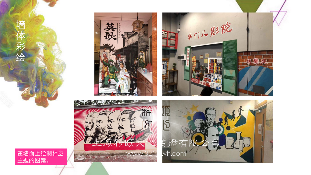 墻體彩繪在墻面上繪制相應(yīng)主題的圖案。