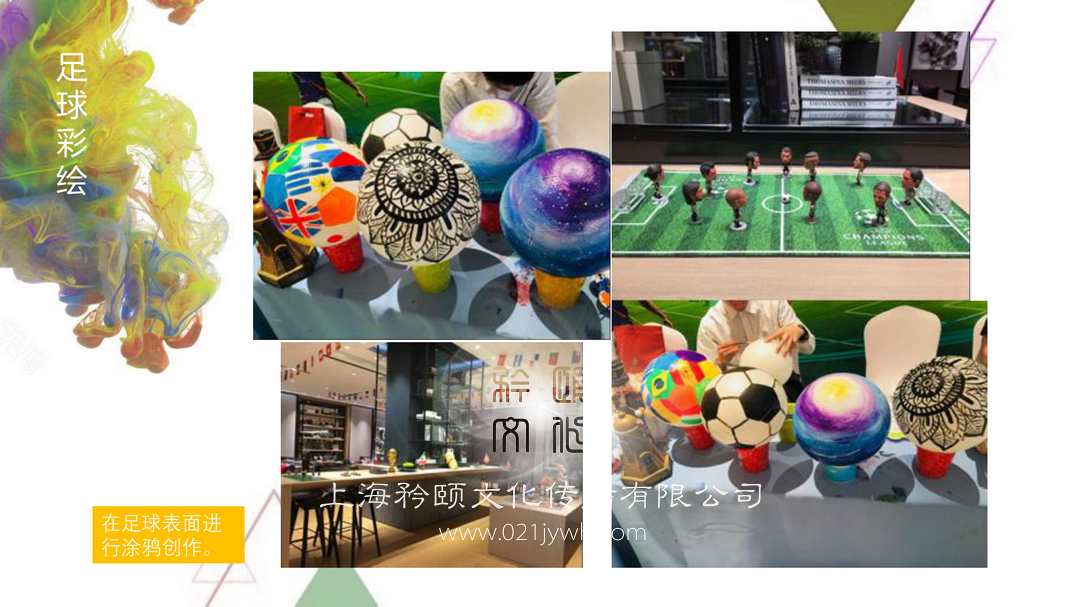 足球彩繪在足球表面進(jìn)行涂鴉創(chuàng)作。