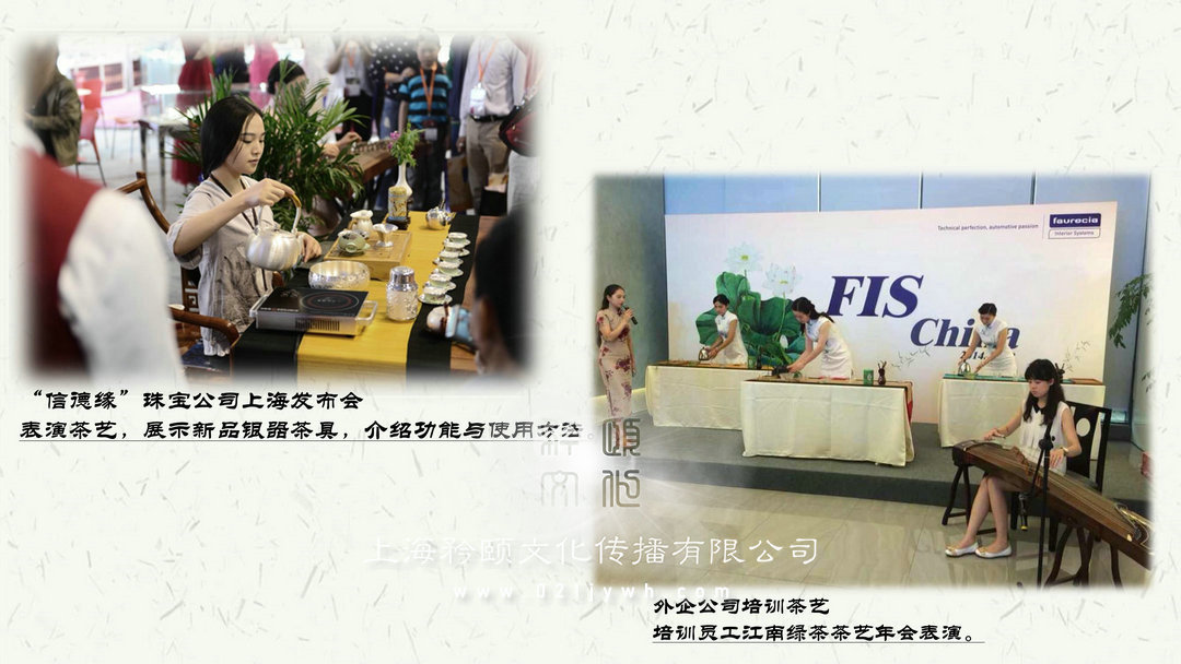 承接房產(chǎn)開盤,公司慶典,4S店茶事待客,新聞發(fā)布會(huì)等茶藝暖場(chǎng),表演及沙龍講解。發(fā)布會(huì)巡演類活動(dòng):烏鎮(zhèn)文化節(jié)發(fā)布會(huì)、西塘漢服文化節(jié)、奔馳巡演活動(dòng)、奧迪周年慶巡演活動(dòng)