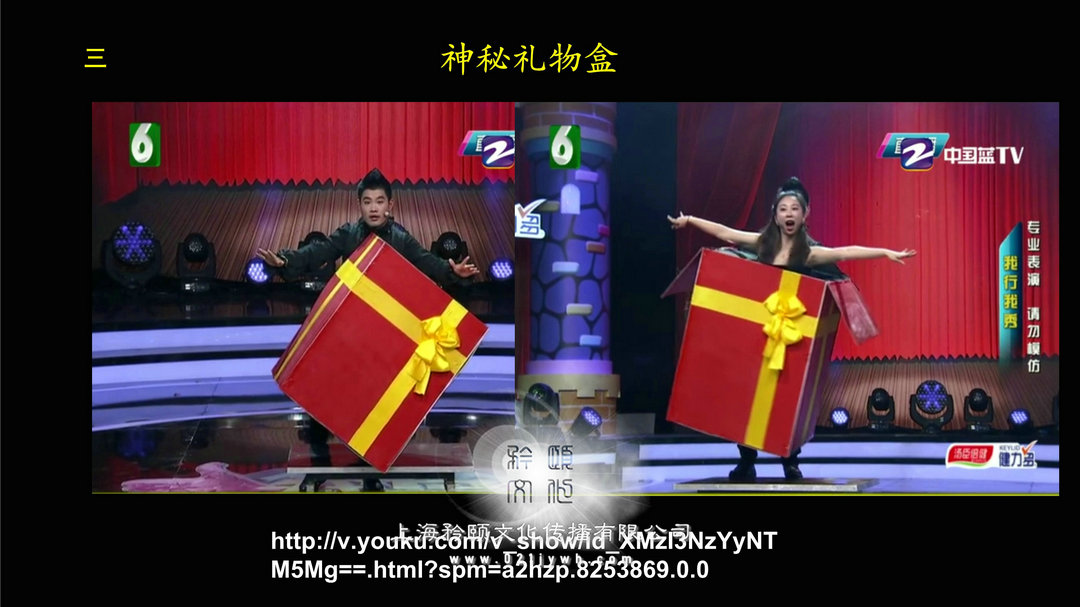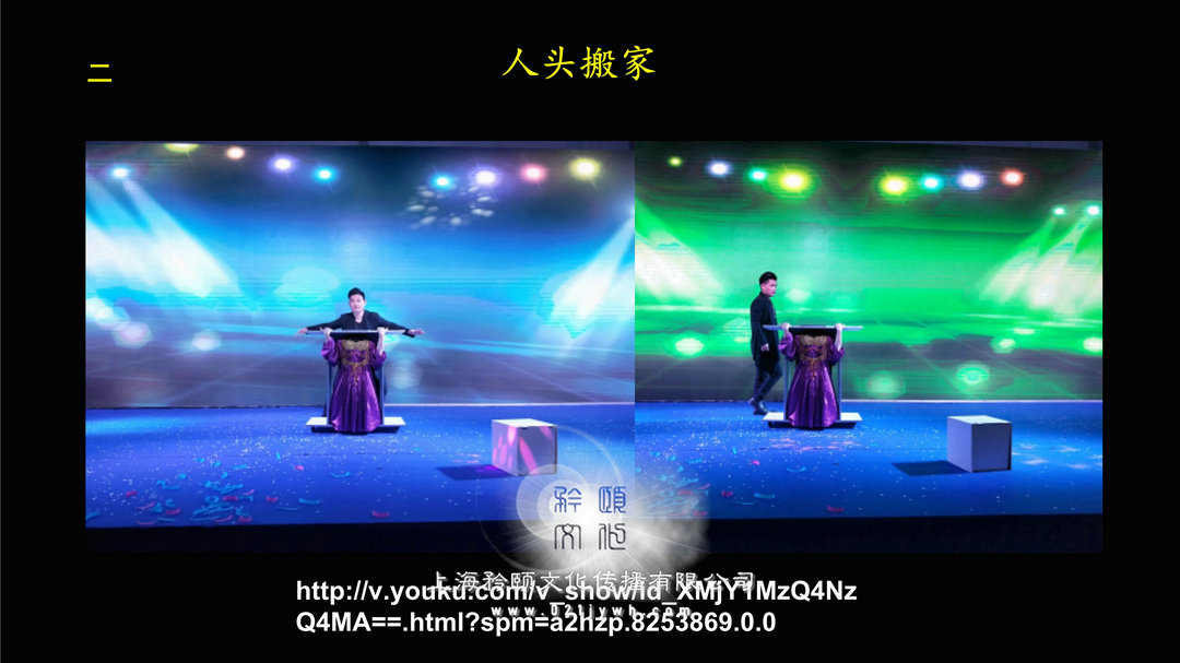 節(jié)目單:箱中傳奇、人頭搬家、神秘禮物盒、神秘禮物盒、古彩戲法、金玉滿堂、綁人換人、奇幻變裝秀、移形換位、大變活人
