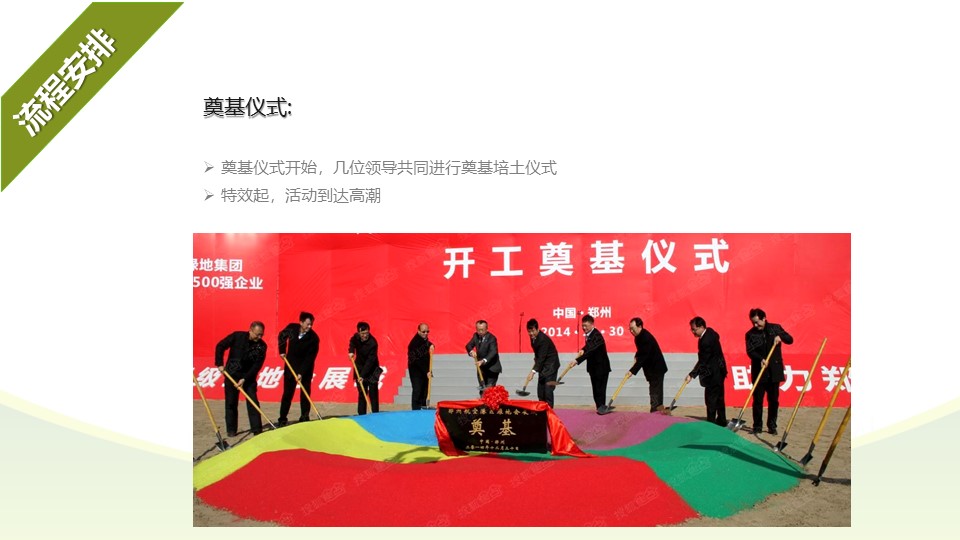 2、以奠基典禮為主線,通過項目開工典禮、慶祝環(huán)節(jié)來完成活動目的;