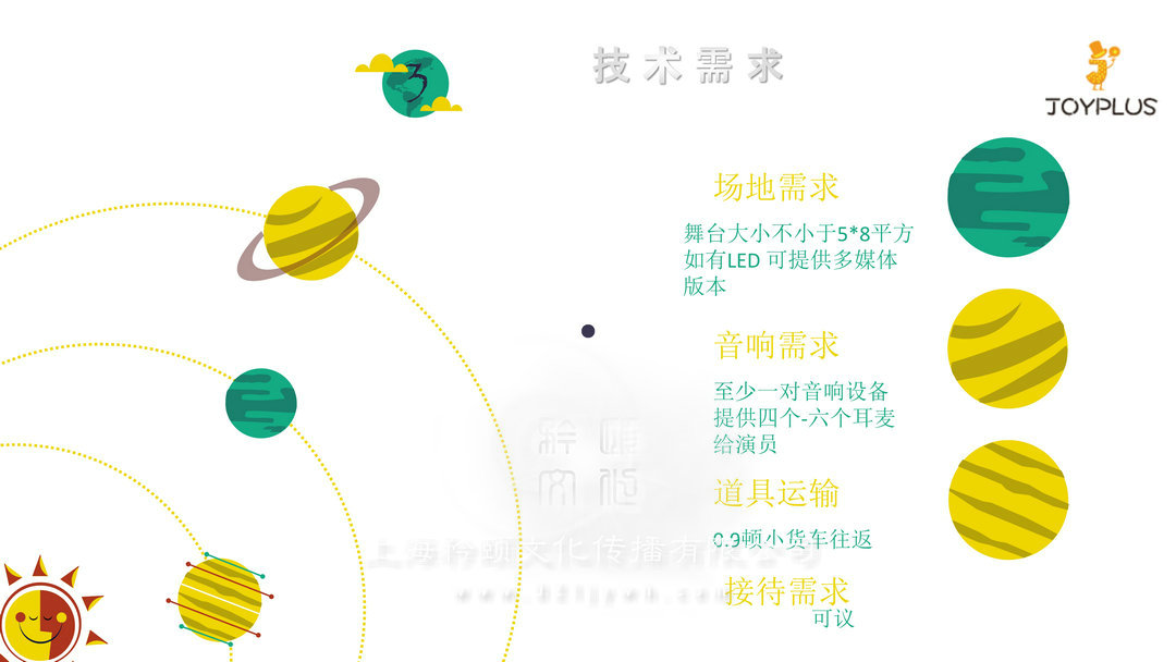 場(chǎng)地需求:至少一對(duì)音響設(shè)備提供四個(gè)-六個(gè)耳麥給演員音響需求0.9頓小貨車往返道具運(yùn)輸可議