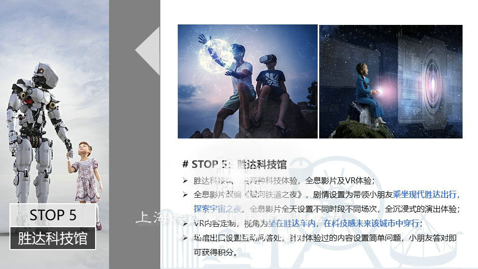 勝達科技館內(nèi)設兩種科技體驗,全息影片及VR體驗;全息影片改編《銀河鐵道之夜》,上海公關策劃為帶領小朋友乘坐現(xiàn)代勝達出行,探索宇宙之夜。全息影片全天設置不同時段不同場次,全沉浸式的演出體驗;VR內(nèi)容定制,視角為坐在勝達車內(nèi),在科技感未來該城市中穿行;場館出口設置互動問答處,針對體驗過的內(nèi)容設置簡單問題,小朋友答對即可獲得積分。