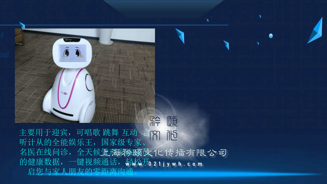 主要用于迎賓,可唱歌 跳舞 互動(dòng)  言聽計(jì)從的全能娛樂王,國家級專家、名醫(yī)在線問診,全天候管理家族成員的健康數(shù)據(jù),一鍵視頻通話,輕松開啟您與家人朋友的零距離溝通。