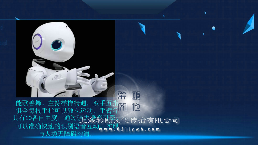 能歌善舞、主持樣樣精通,雙手五指俱全每根手指可以獨(dú)立運(yùn)動(dòng)、手臂各具有10各自由度,通過強(qiáng)大語音引擎、可以準(zhǔn)確快速的識別語音互動(dòng)、實(shí)現(xiàn)與人類無障礙溝通。