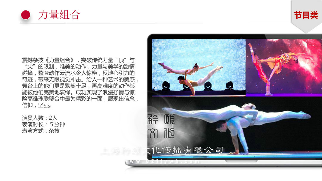 力量組合節(jié)目類:震撼雜技《力量組合》,突破傳統(tǒng)力量“頂”與“尖”的限制,唯美的動(dòng)作,力量與美學(xué)的激情碰撞,整套動(dòng)作云流水令人驚艷,反地心引力的奇跡,帶來無限視覺沖擊。給人一種藝術(shù)的美感,舞臺(tái)上的他們更是默契十足,再高難度的動(dòng)作都能被他們完美地演繹。成功實(shí)現(xiàn)了浪漫抒情與驚險(xiǎn)高難珠聯(lián)璧合中最為精彩的一面。展現(xiàn)出信念,信仰,堅(jiān)強(qiáng)。