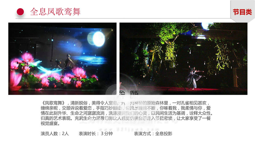 演員人數(shù):2人表演時(shí)長:3分鐘     表演方式:全息投影