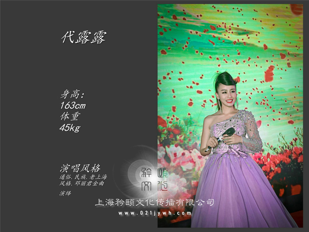 演唱風格:通俗、民族、老上海風格、鄧麗君金曲演繹