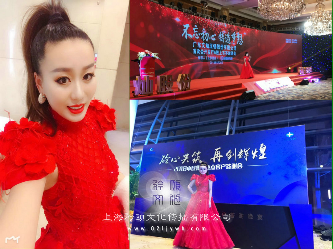 在上海各類活動中擔任演出歌手嘉賓:上海旅游節(jié)、浦東新區(qū)部隊慰問演出、北京現(xiàn)代年會、好爾科技十周年、奔馳汽車、千子晨婚紗攝影、匯源集團新品上市發(fā)布會及晚宴、東亞銀行開業(yè)慶典、上海時代廣場萬圣節(jié)PATTY、斯波登大酒店圣誕晚會、東方鵲橋節(jié)、樂晨大酒店圣誕狂歡、伊美公司新年團拜會、西門子上海低壓斷路器有限公司07新年晚會、國大藥房5周年慶典晚宴、浙大網(wǎng)新上海分公司開業(yè)慶典、年鄭州日產(chǎn)皮卡汽車上海巡展活動、長城精靈上市、聯(lián)想奧運獻禮高校行、豐田車展、王老吉全國巡演、第二屆萬科社區(qū)大聯(lián)歡巡演晚會、上海旅游節(jié)、購物節(jié)楊浦區(qū)開幕式活動、新世代全順汽油車上海雄威上市發(fā)布會、老鳳祥璀璨之夜—上海旅游節(jié)楊浦、車巡游發(fā)車儀式等等、豫園中秋游園會開幕式、世博志愿者頒獎典禮、老板電器晚宴