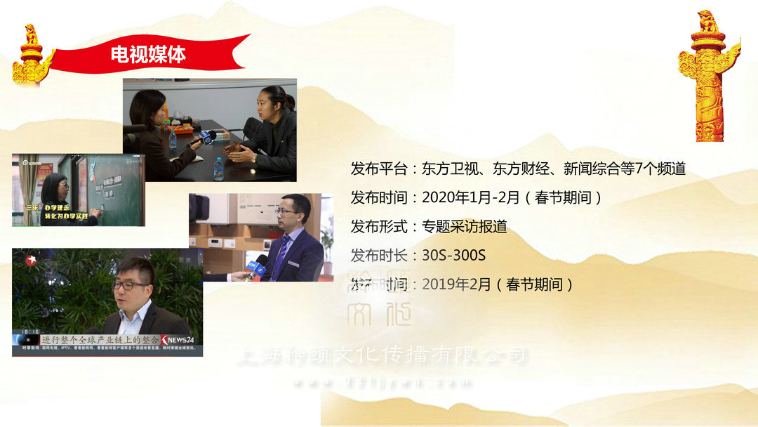 電視媒體:               發(fā)布平臺:東方衛(wèi)視、東方財(cái)經(jīng)、新聞綜合等7個(gè)頻道