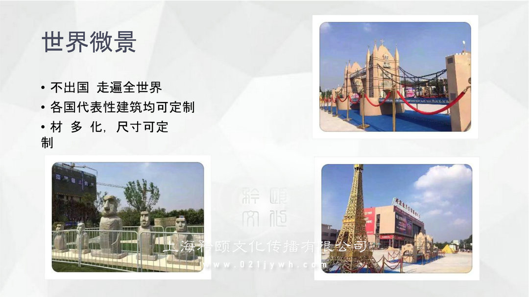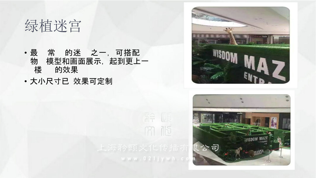 上海展覽道具租賃公司是目前國內(nèi)最具影響力的一家專業(yè)從事展覽道具研發(fā)、租賃、出售等一體的服務(wù)機(jī)構(gòu),有著約20000平方倉庫、500萬自有各類道具儲備,專注于八大領(lǐng)域發(fā)展:科技互動設(shè)備、卡通道具、各類氣模闖關(guān)、微縮景觀、航空軍事展覽、燈光舞美及演出、全息視頻制作、特色資源(冰雕燈光動物等)。