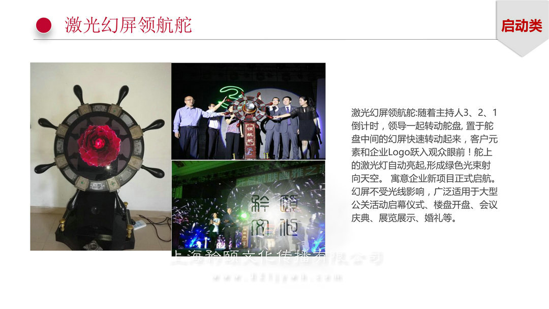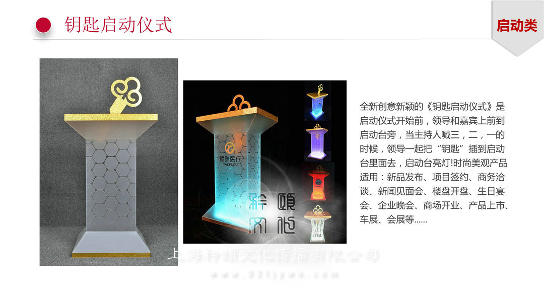 •鑰匙啟動儀式•手掌啟動儀式•翅膀啟動•激光幻屏領航舵•全息鉆石啟動儀式•飛鷹啟動儀式•3D啟動盒•魔方啟動•鎏沙啟動儀式•3D幻屏啟動•3D風扇啟動柱•畫軸啟動•干冰升降啟動3D幻屏啟動啟動類
