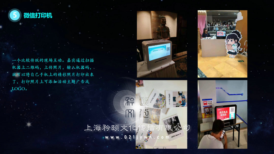 一個(gè)比較傳統(tǒng)的現(xiàn)場(chǎng)互動(dòng)。嘉賓通過(guò)掃描機(jī)器上二維碼,上傳照片,輸入機(jī)器碼,一以葑自己于機(jī)上的精彩照片打印出來(lái)了,打印照片上可添加活動(dòng)主題廣告或.LOGOO