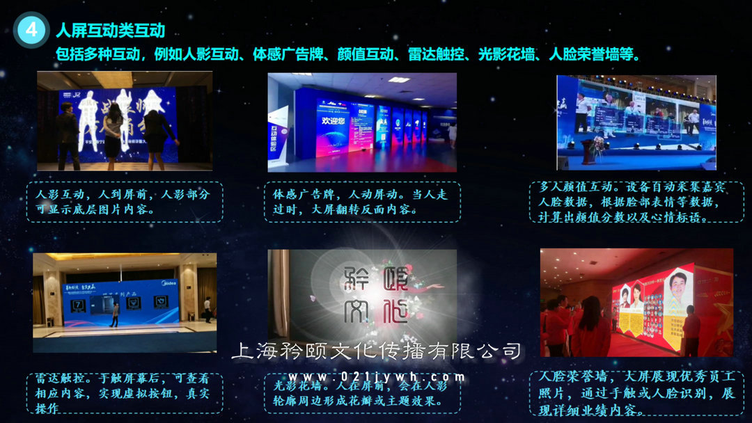 人屏互動(dòng)類互動(dòng),包括多種互動(dòng),例如人影互動(dòng)、體感廣告牌、顏值互動(dòng)、雷達(dá)觸控、光影花墻、人臉榮譽(yù)墻等。