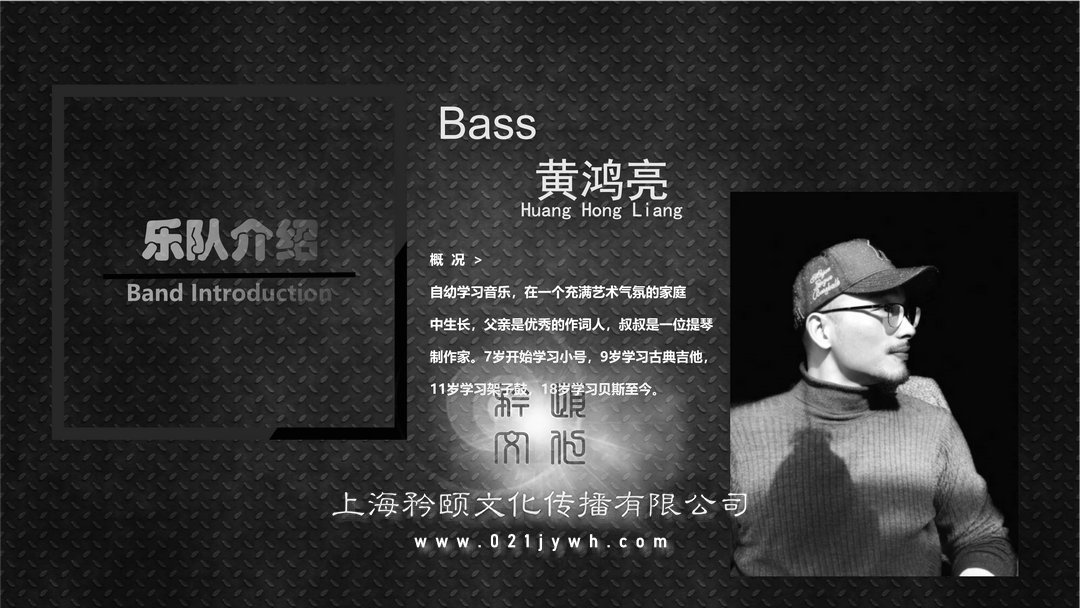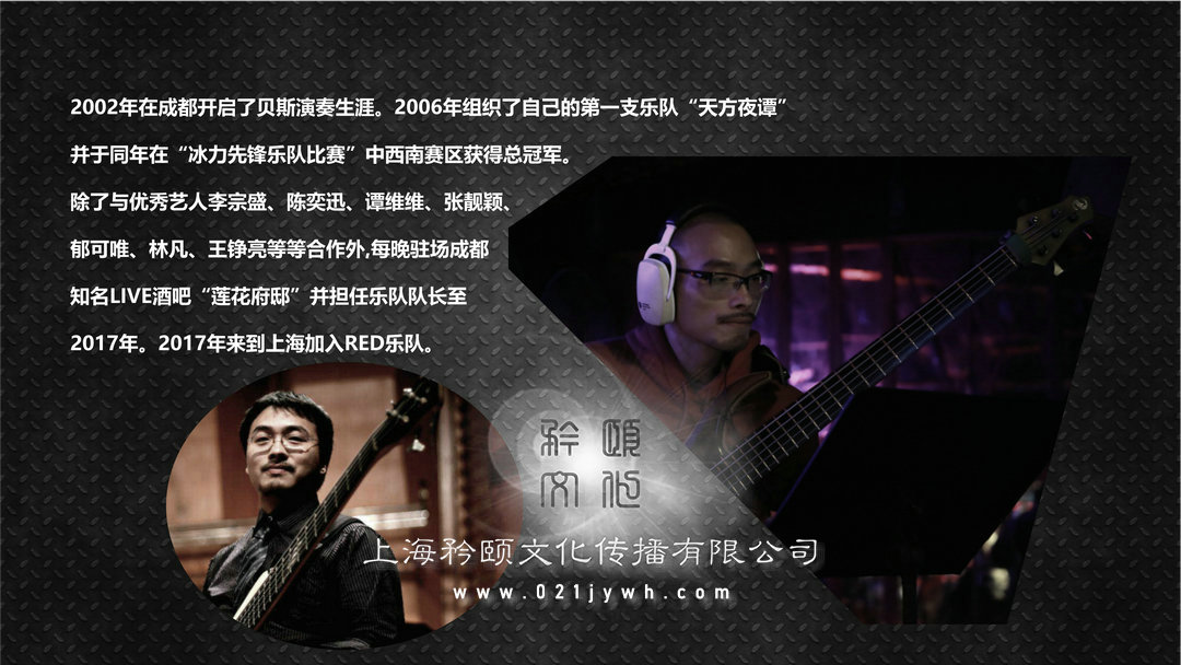 貝斯手,自幼學(xué)習(xí)音樂,在一個充滿藝術(shù)氣氛的家庭中生長,父親是優(yōu)秀的作詞人,叔叔是一位提琴制作家。7歲開始學(xué)習(xí)小號,9歲學(xué)習(xí)古典吉他,11歲學(xué)習(xí)架子鼓,18歲學(xué)習(xí)貝斯至今。2002年在成都開啟了貝斯演奏生涯。2006年組織了自己的第一支樂隊“天方夜譚”并于同年在“冰力先鋒樂隊比賽”中西南賽區(qū)獲得總冠軍。除了與優(yōu)秀藝人李宗盛、陳奕迅、譚維維、張靚穎、郁可唯、林凡、王錚亮等等合作外,每晚駐場成都知名LIVE酒吧“蓮花府邸”并擔(dān)任樂隊隊長至