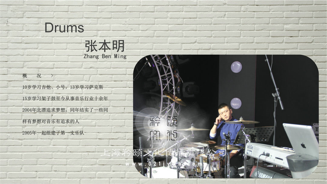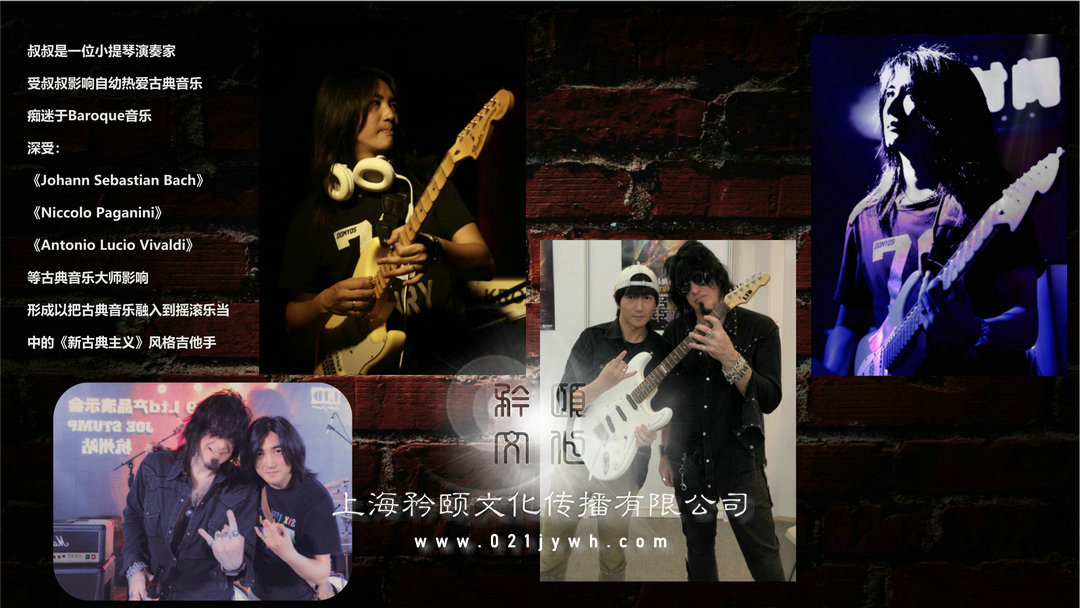 10歲學(xué)習(xí)吉他、小號,13歲學(xué)習(xí)薩克斯15歲學(xué)習(xí)架子鼓至今從事音樂行業(yè)十余年2004年北漂追求夢想,同年結(jié)實了一些同樣有夢想對音樂有追求的人,2005年一起組建了第一支樂隊、2007年?群星慈善演唱會哈爾濱站現(xiàn)場樂隊、2009年?潘美辰歌友會現(xiàn)場樂隊、2011年?超級女生成都賽區(qū)現(xiàn)場樂隊、教授Joe?Stump?黑龍江省吉他學(xué)會副會長,黑龍江省流行音樂協(xié)會副會長,2003年組建了自己的第一支樂隊“黑C”叔叔是一位小提琴演奏家受叔叔影響自幼熱愛古典音樂癡迷于Baroque音樂,形成以把古典音樂融入到搖滾樂當(dāng),中的《新古典主義》風(fēng)格吉他手