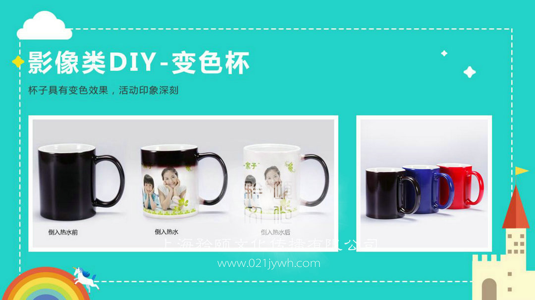 杯子具有變色效果,活動(dòng)印象深刻,家子倒入熱水前,倒入熱水倒入熱水后