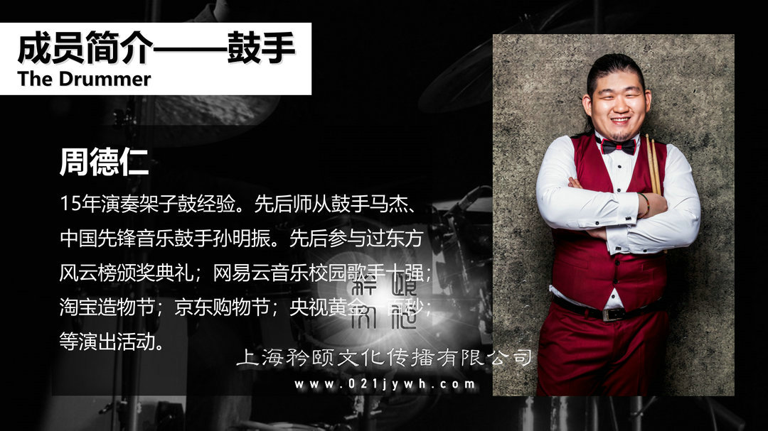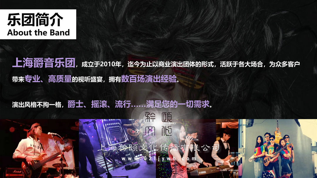 上海爵音樂團(tuán),成立于2010年,迄今為止以商業(yè)演出團(tuán)體的形式,活躍于各大場合,為眾多客戶帶來專業(yè)、高質(zhì)量的視聽盛宴,擁有數(shù)百場演出經(jīng)驗(yàn)。演出風(fēng)格不拘一格,爵士、搖滾、流行……滿足您的一切需求。