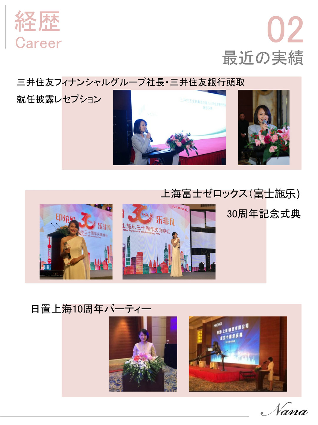 各種イベント、式典、セミナー、萬(wàn)博パビリオン、ライブの司會(huì)など數(shù)多くの経験をもっています。(中國(guó)語(yǔ)?日本語(yǔ)どちらでもOK)